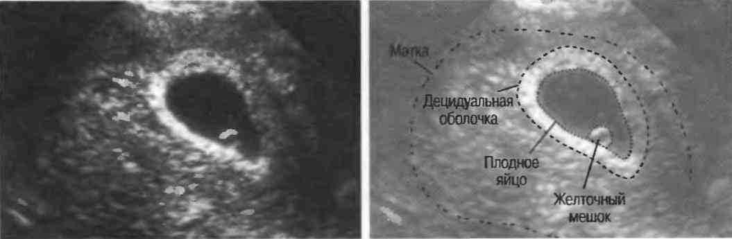 Трансвагінальне УЗД – золота стандарт: плідне яйце видно з 4.5 тижня, жовтковий мішок з 5.5, ембріон з 6. Середній діаметр мішка (MSD) понад 25 мм без ембріона чи відсутність ембріона через 16 днів після жовткового – критерії ISUOG для діагнозу. Доплер не фіксує кровотоку в жовтковому мішку.
