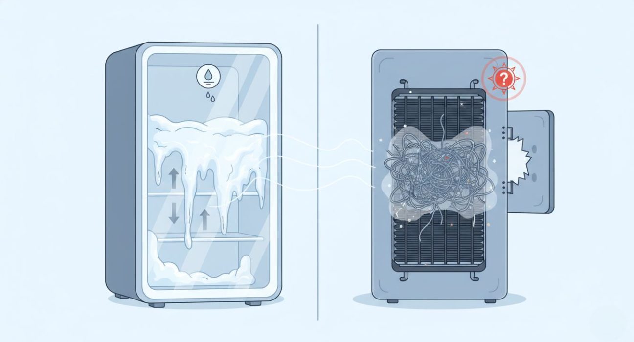 Тонкий шар інею до 3-5 мм на капельних холодильниках – це норма, як легкий іней на вікні взимку, за даними beko.com. Товстіший лід сигналізує: двері не герметичні, волога надходить звідкись ззовні, або електроніка барахлить. Тепер зануримося глибше в механіку, щоб ви самі могли діагностувати і полагодити без зайвих витрат.