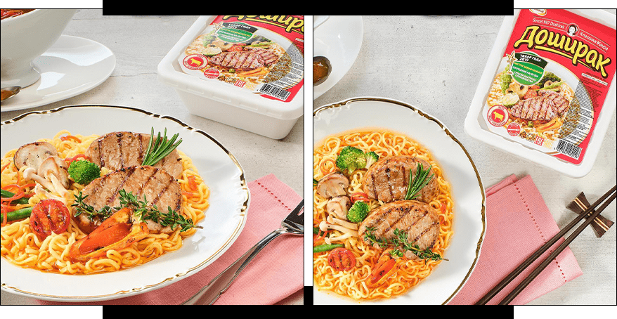 Цікаво, що в Кореї досірак – це домашня їжа, а не фастфуд. Корейці їдять свіжий рис з овочами та м’ясом у коробці, тоді як наша версія – суха локшина для гарячої води. Ця адаптація зробила продукт глобальним феноменом.