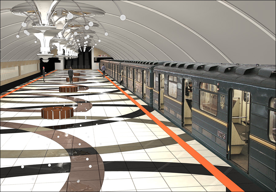 - 🎨 Дизайн станції натхненний темою виставок: абстрактні мотиви на стінах символізують рух і інновації, ніби картини, що оживають під ногами пасажирів.