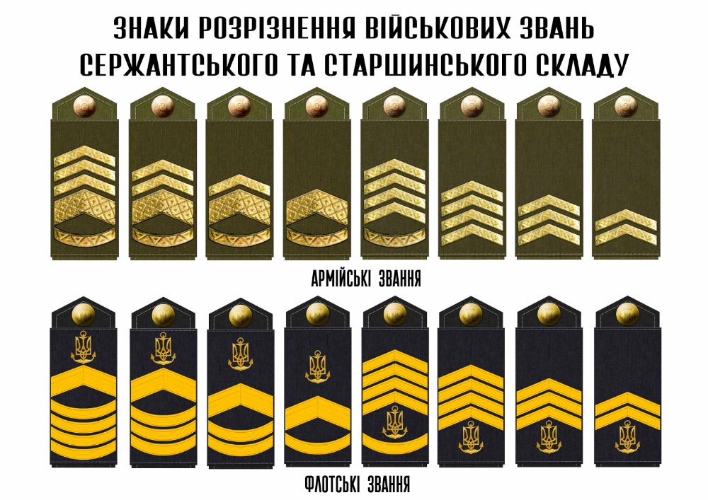 Тут реформа розгулялася по-справжньому – сержанти стали серцем ЗСУ, з дев’ятьма рівнями від молодшого сержанта до головного майстер-сержанта. Молодший сержант командує розрахунком, сержант – відділенням, а головний майстер-сержант бригади радить командиру. Ці звання підняли статус “нижчих чинів”, зробивши їх професіоналами з освітою.