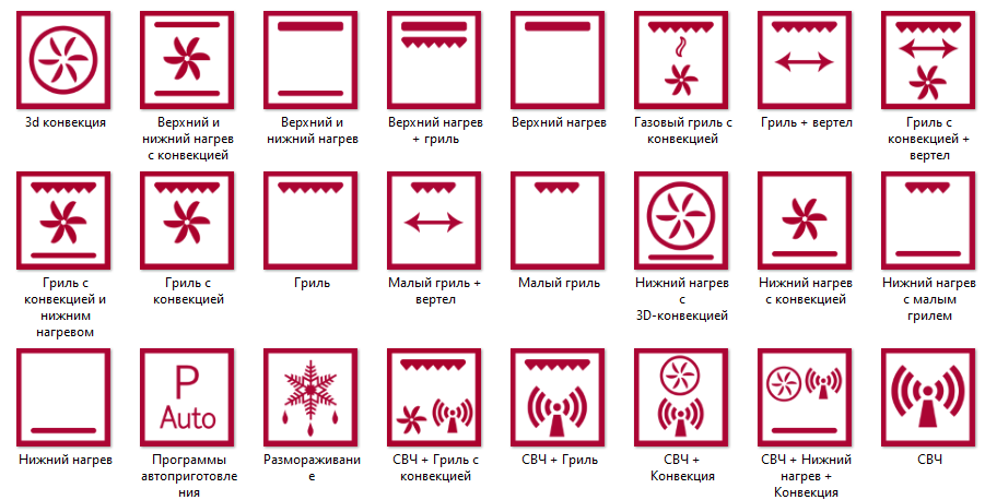 | Гриль | Зигзаг | Зигзаг + вогонь | Верхній ТЕН | Стрілка вгору |