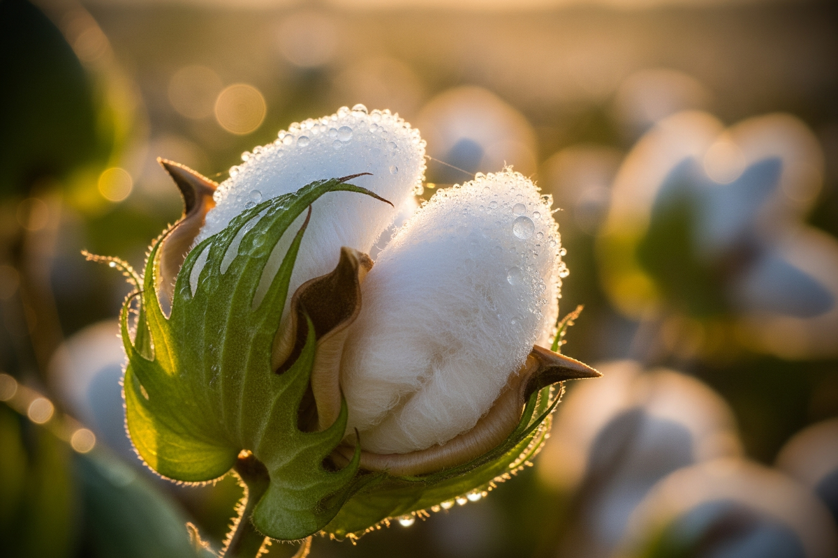 Пухнасті білі клубки визирають з розкритих коробочок під палючим сонцем тропіків, ніби хмаринки, що впали на землю. Це бавовна — натуральне текстильне волокно, яке окутує насіння кущоподібної рослини роду Gossypium з родини мальвових. Щороку світ виробляє понад 25 мільйонів тонн цієї сировини, роблячи її основою 40% усіх текстильних матеріалів. Від м’яких футболок до міцних джинсів — бавовна торкається шкіри мільярдів людей, даруючи комфорт і дихання.
