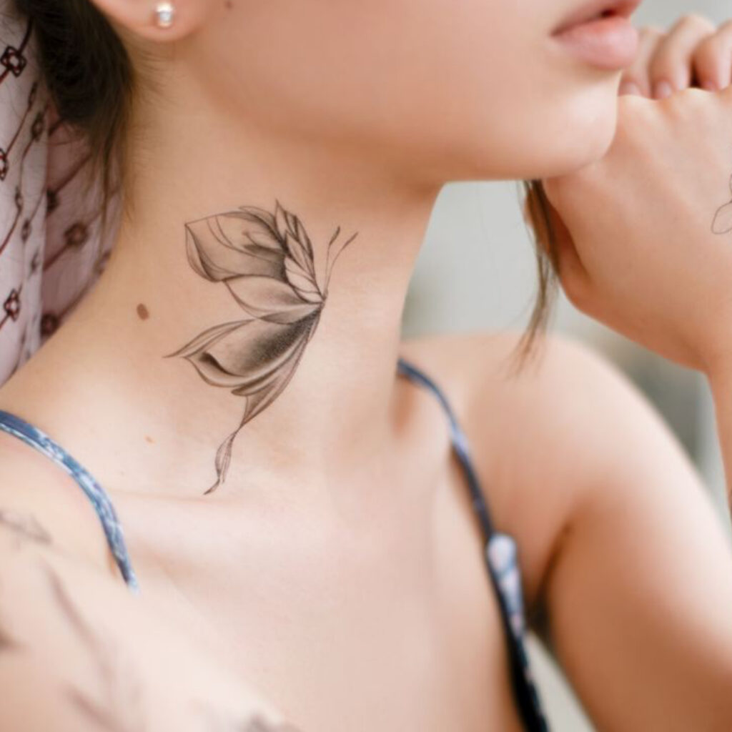 Стилі та варіації тату метелика на шиї