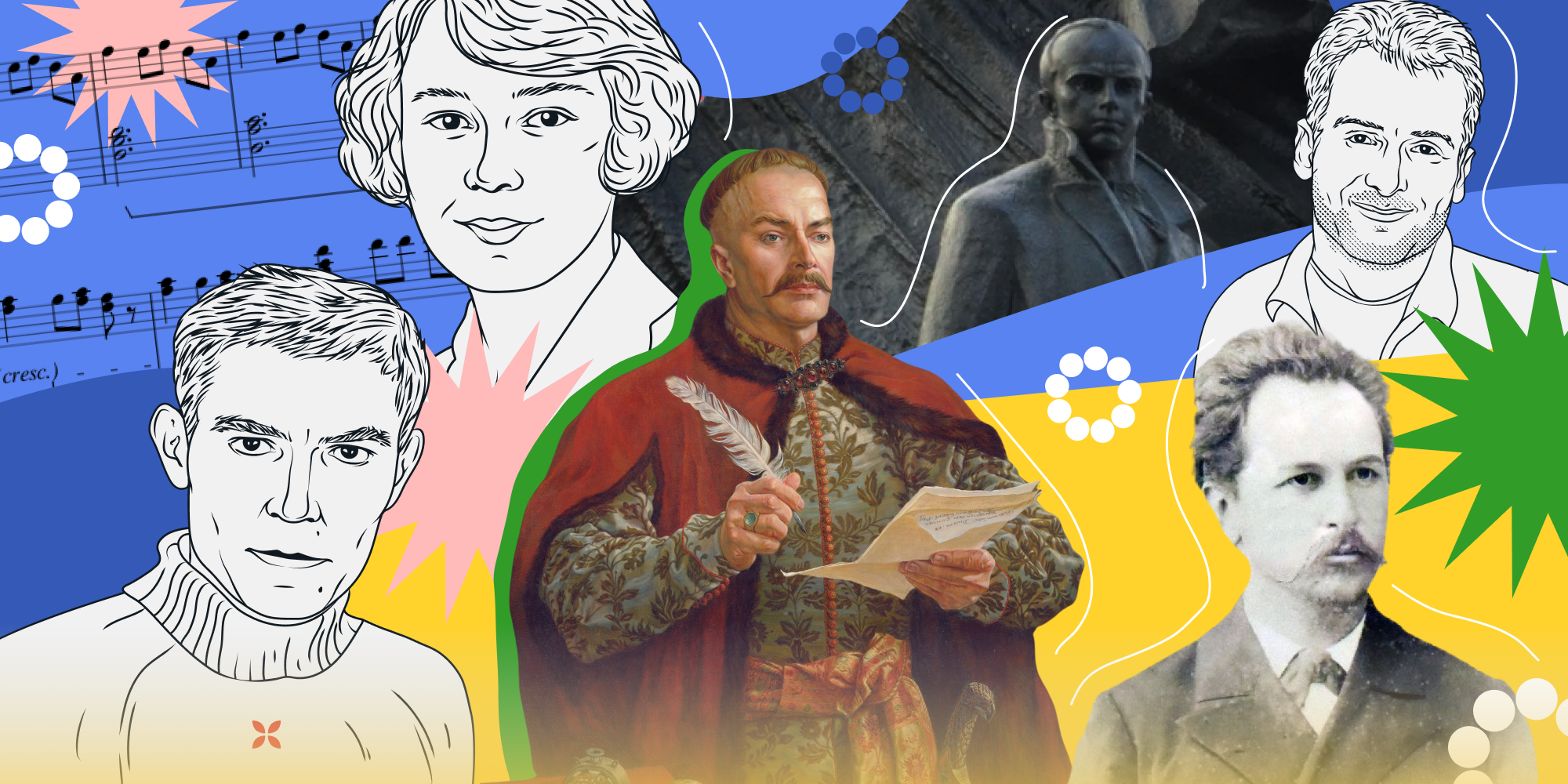 Іван Франко, 1856–1916, “Каменяр” з Дрогобича, видав понад 5000 творів: від поем “Мойсей” до наукових праць з етнографії. Арештований австрійцями за соціалізм, він став мостом між Заходом і Сходом Галичини. Ліна Костенко, народжена 19 березня 1930-го в Ржищеві, шістдесятниця, чия “Маруся Чурай” розійшлася мільйонними тиражами, досі пише про любов і біль нації.