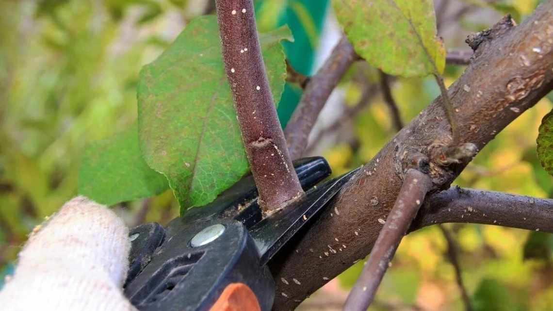 - Видаліть слабкі гілки: зрізайте їх біля стовбура, під кутом, щоб рана швидко загоювалася природним соком.