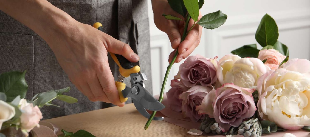 Гострота – запорука здоров’я. Обирайте обвідні секатори (bypass), як Fiskars чи Felco: вони роблять чистий зріз без роздавлювання. Для букета – кухонний ніж з тонким лезом.