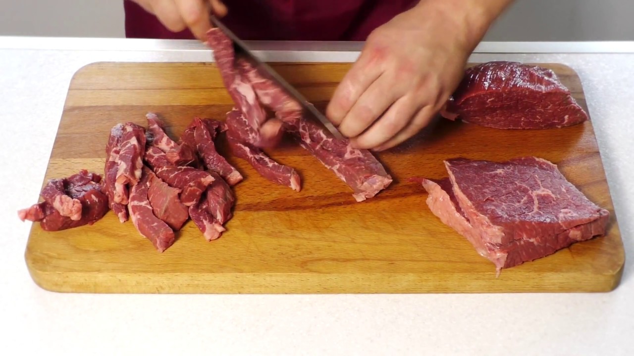 Факт: поперек волокон скорочує час смаження на 30%. Економте час і смак.