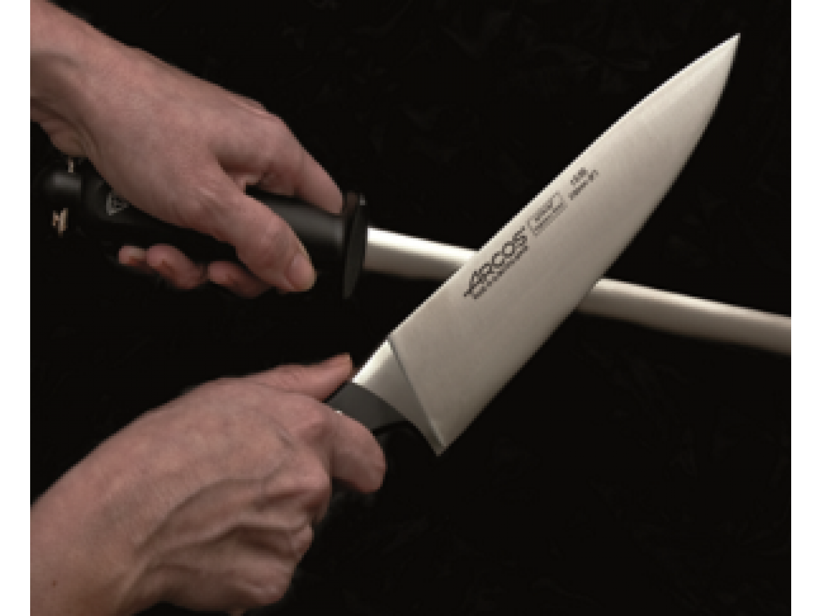 Мусат — щоденний герой: тримайте під 20°, рухи зверху вниз, як диригент. Не плутайте з заточкою — він править, не знімає метал. Керамічний мусат для твердої сталі, сталевий — для м’якої.