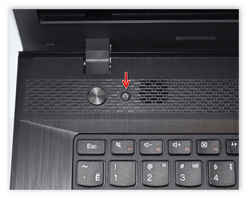 - Lenovo — класичне місце праворуч від клавіатури або зверху праворуч, часто з маленьким світлодіодом навколо.