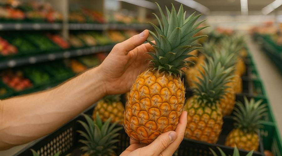 Повністю зелений ананас може здаватися свіжим, але часто ховає жорстку, безсмакову м’якоть – виробники зривають плоди недозрілими для далекої дороги. Навпаки, надто темний, майже помаранчевий плід ризикує бути перестиглим, з бродильним присмаком. Ідеал – 50-70% жовтого забарвлення, особливо біля основи, де скупчуються соки.